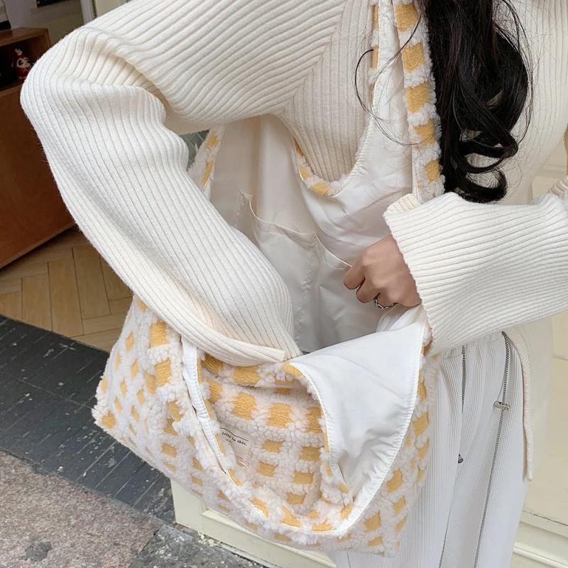 - Waffle plaid top-handle bag for a trendy look