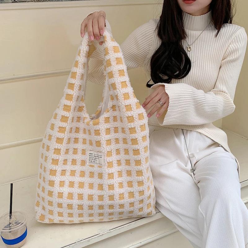 Waffle Plaid Top-handle Bag Large Capacity Casual Tote Shopping Street Travel