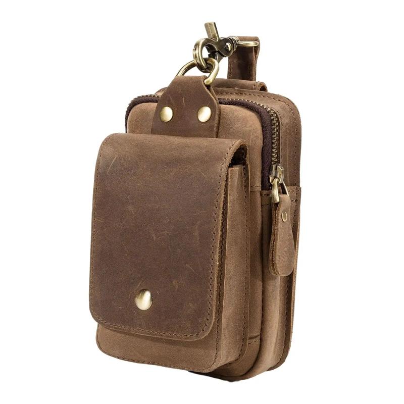 This waist bag is made of durable PU material, perfect for outdoor travel. It features a mobile phone pouch and multiple pockets for convenience.