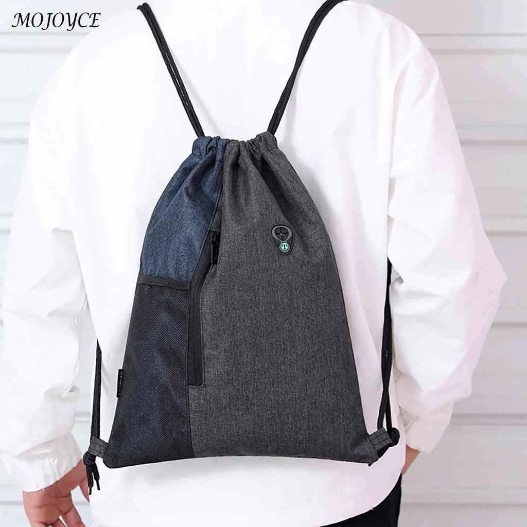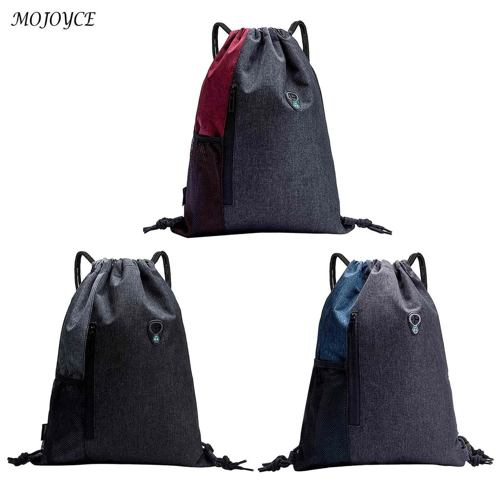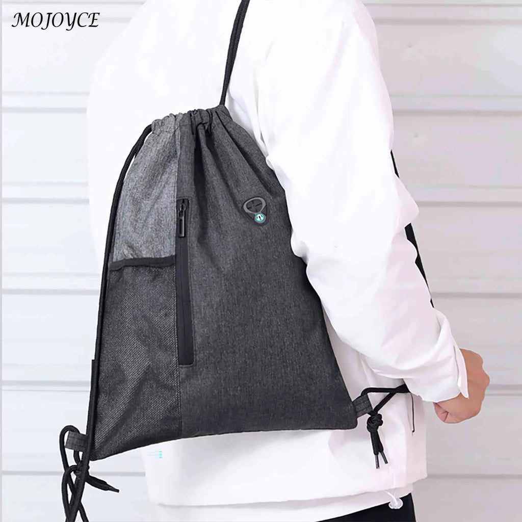 Water-Repellent Gym Sack Drawstring Bag Mesh Pocket Knapsack