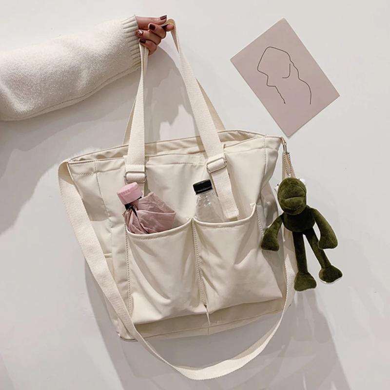 This Harajuku Japanese style tote bag is perfect for students with its large capacity and waterproof feature. It can be worn as a one-shoulder bag or messenger bag.