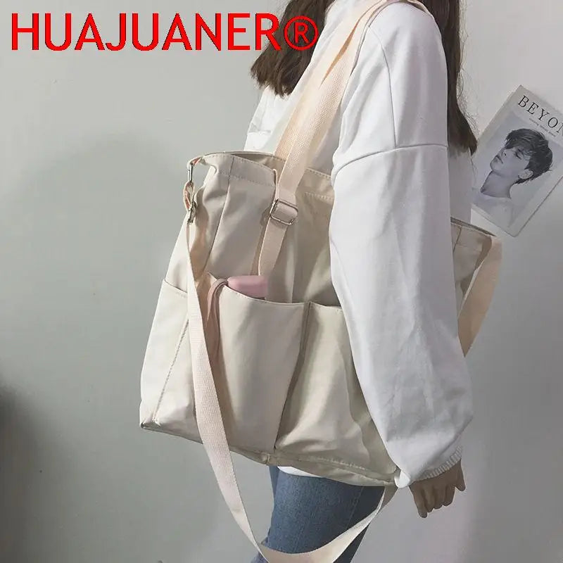 This Japanese Harajuku style waterproof canvas bag is perfect for students. It features a large capacity and one-shoulder design, making it ideal for daily use.