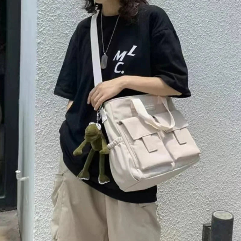 Stay organized with this one shoulder big bag featuring a waterproof design. Perfect for students, this bag has a large capacity and is made of durable canvas material.