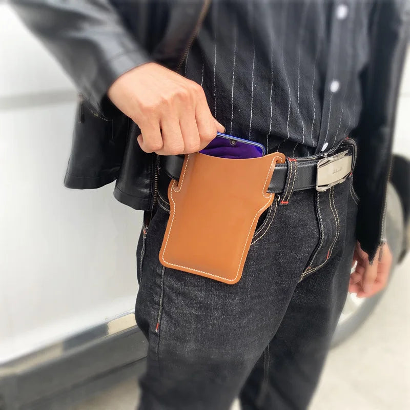 Waterproof Man Waist Bag Retro Leather Mobile Carrier Belt Pouch