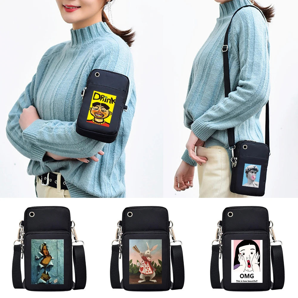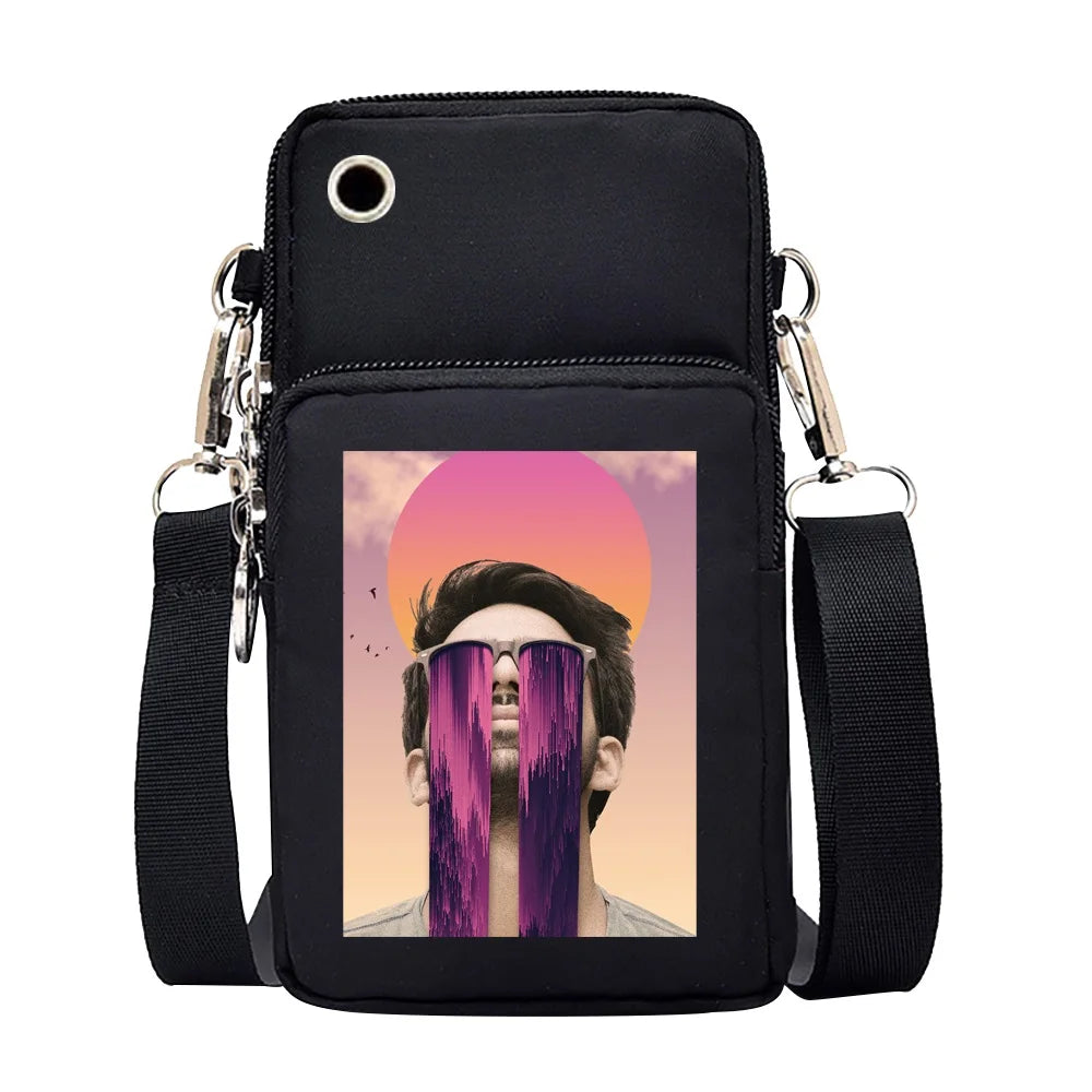 This universal cell case is perfect for carrying your phone in style. It is waterproof and can be worn as a wrist pouch, shoulder bag, or arm pack. The bag features a funny anime design for a touch of fun.