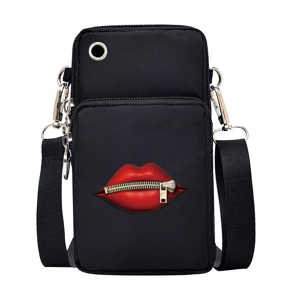 This unisex shoulder bag is designed to keep your mobile phone safe and dry. The mouth printing adds a stylish touch to the design.