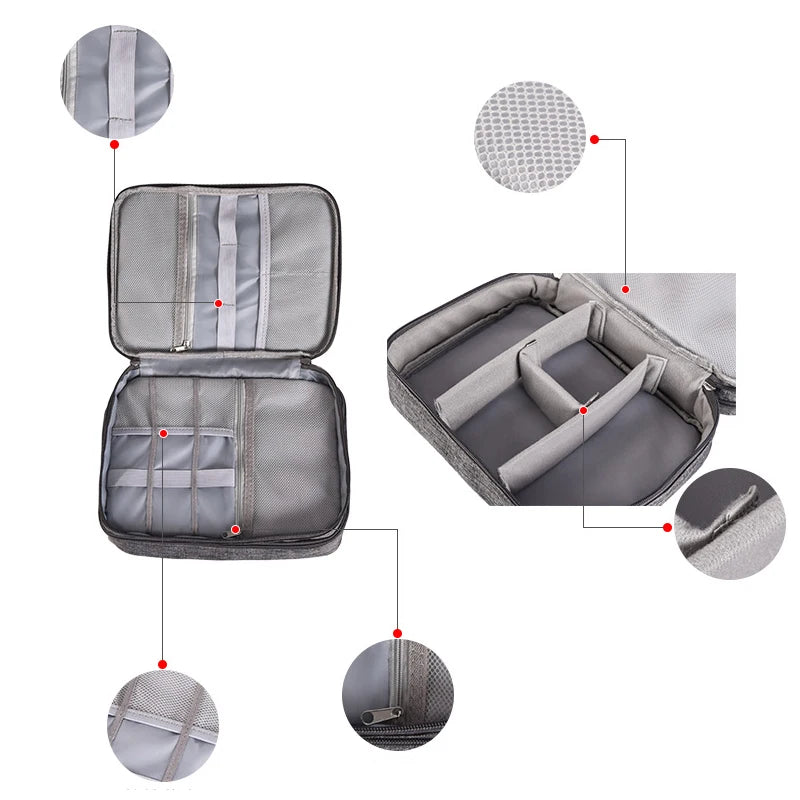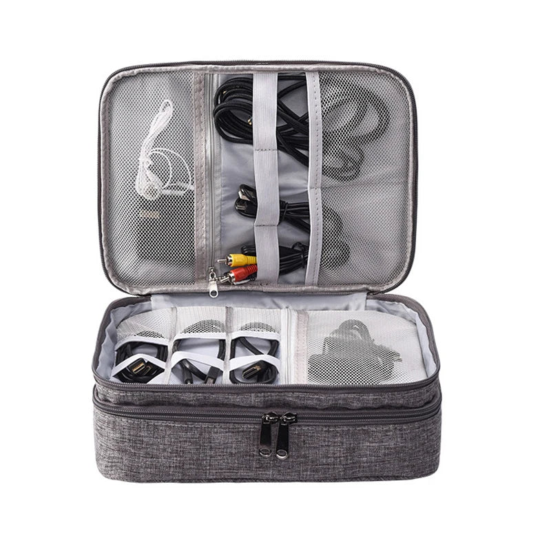 - Double-layer design with large capacity to store earphones, cables, USB accessories, and more