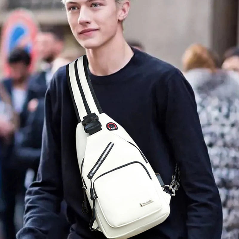 Waterproof USB Leather Crossbody Bag Anti-theft Shoulder Sling Bag