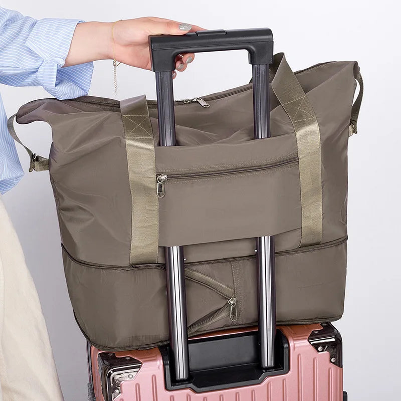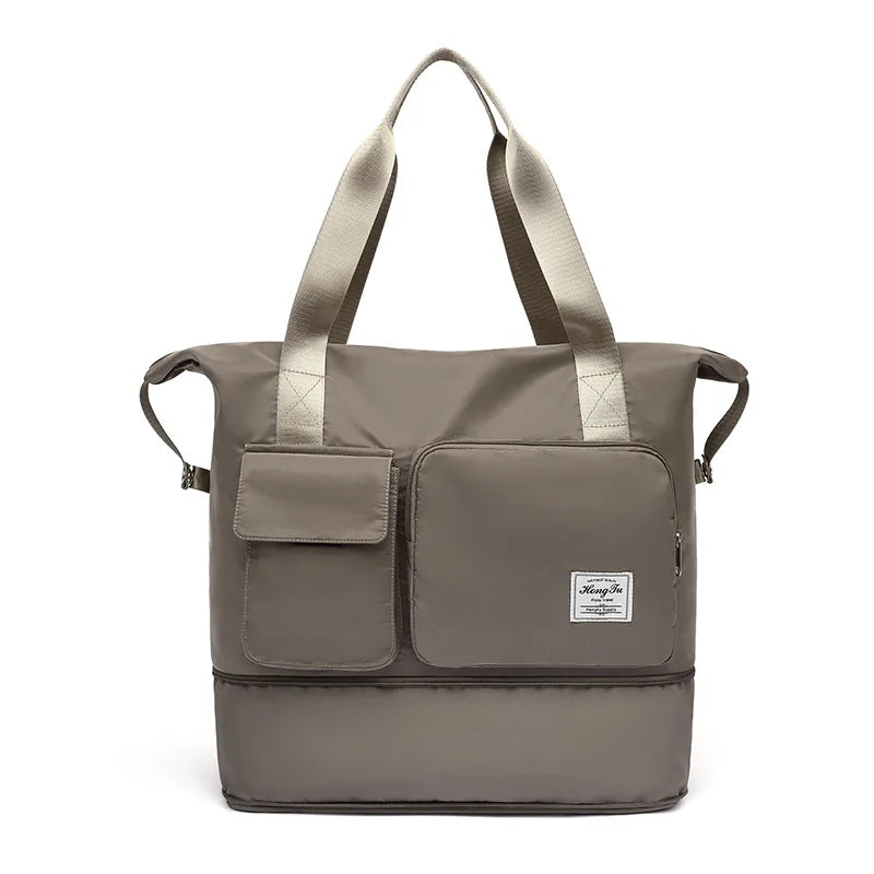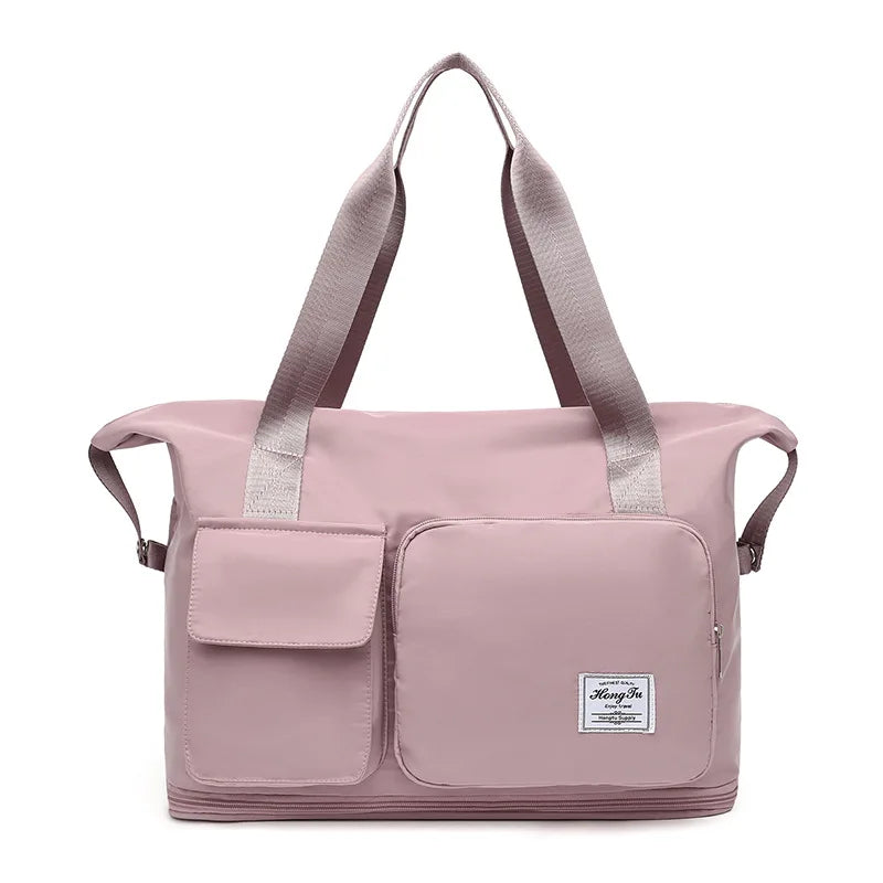 This versatile luggage bag is perfect for weekend getaways, gym trips, swimming, and travel. It features a dry and wet separation design and adjustable capacity.