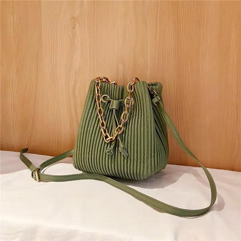 This stylish shoulder bag features a pleated design with a chic chain strap, perfect for daily use or a night out on the town.