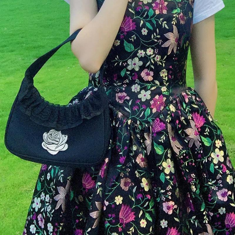 Elegant rose flower lace bag perfect for a touch of vintage charm. This one-shoulder bag is ideal for middle-aged women who appreciate retro style.