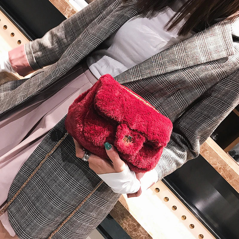 Wild Plush Small Square Shoulder Bag Chain Messenger Bag