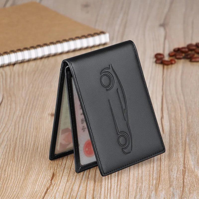 Premium quality card bag and leather case set made of first layer cowhide. Ultra-thin design for convenient storage. Ideal for organizing and protecting your cards and driving essentials.