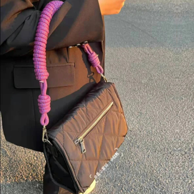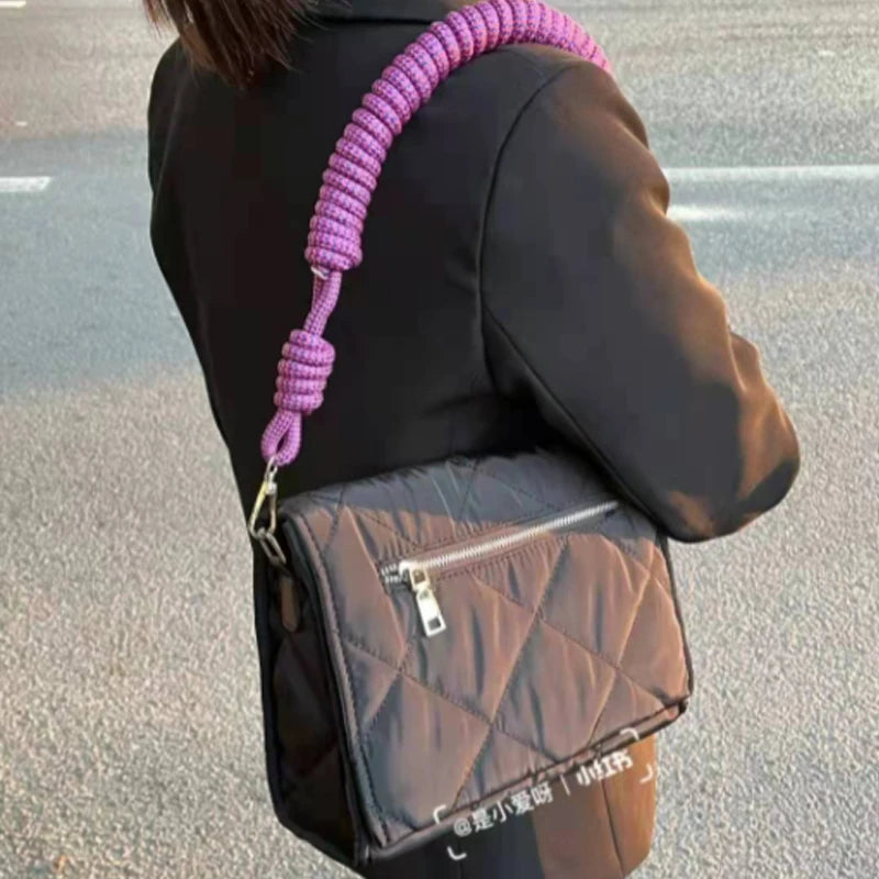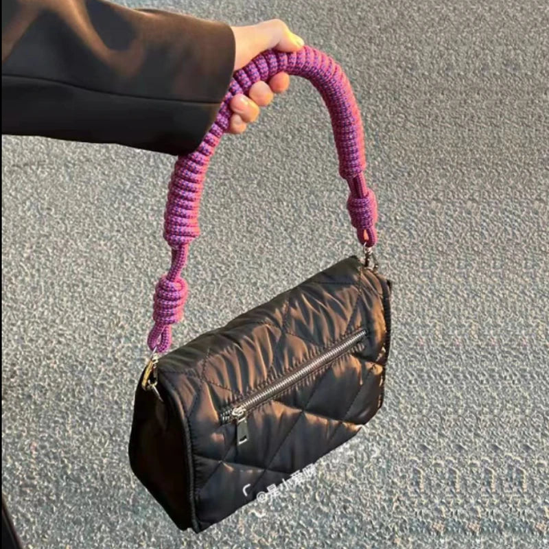 Stay stylish with this hand woven rope single shoulder bag made of fashionable nylon cloth. Features a rhombus square design.
