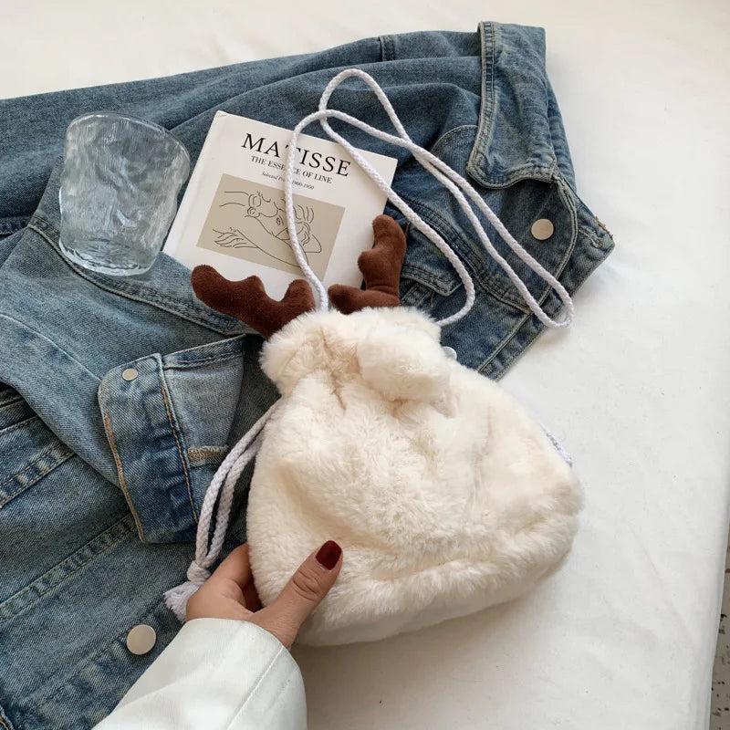 Winter Plush Shoulder Bag Ins Christmas Elk Horn Bucket Bag