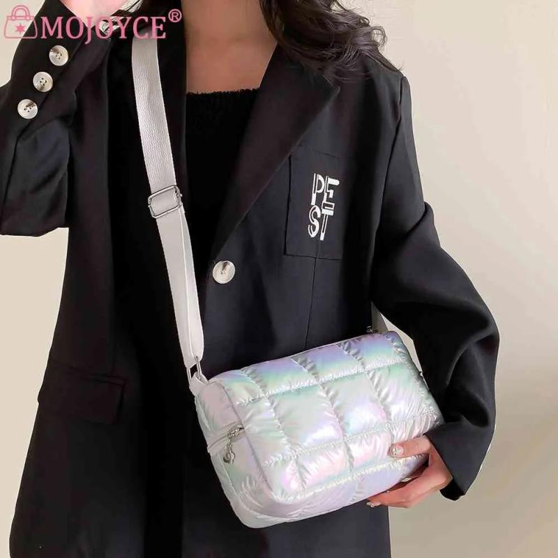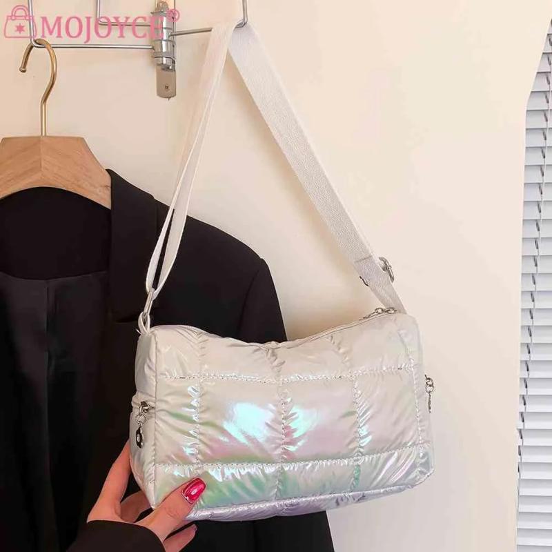 Winter Shoulder Bag Quilted Check Ladies Shopper Bag Casual Nylon Soft Portable