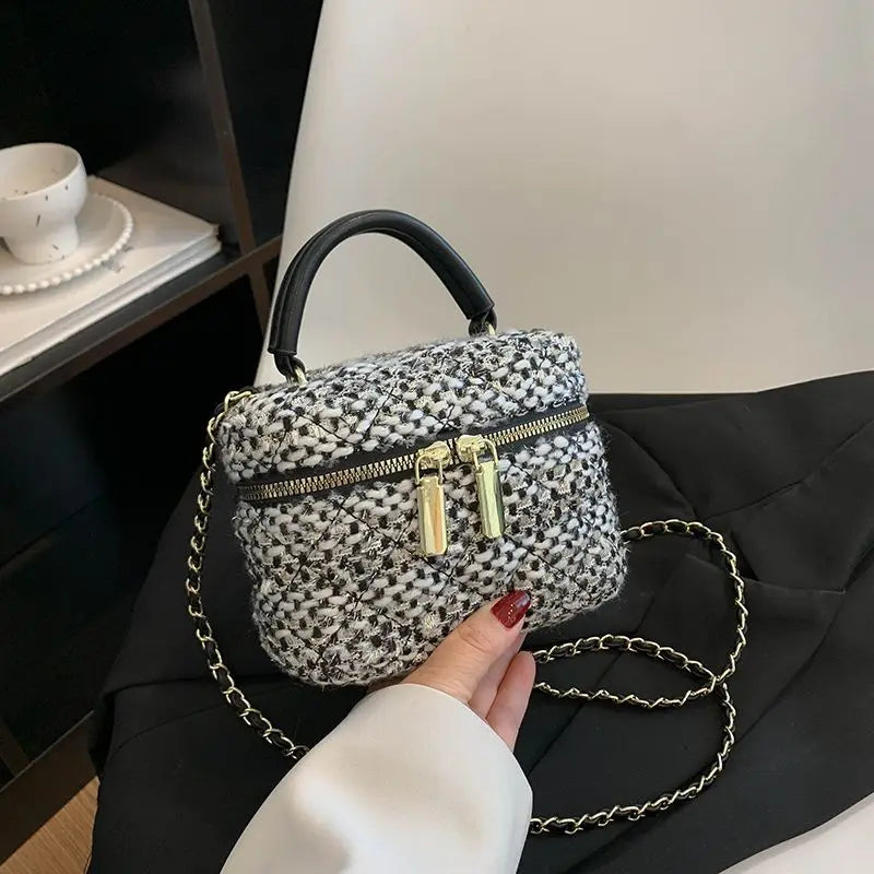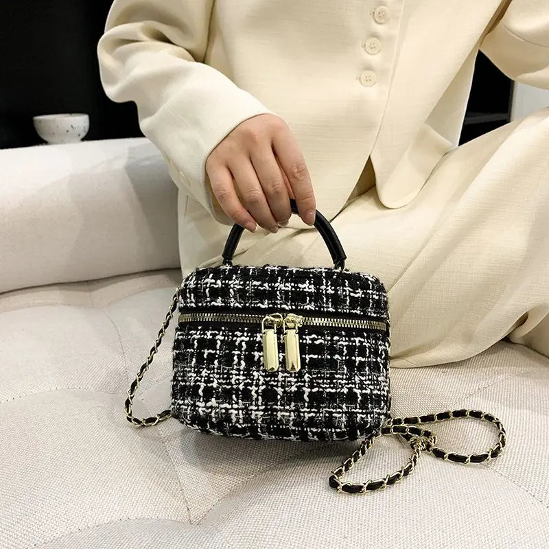 Winter Woolen Plaid Cloth Crossbody Bag for Ladies
