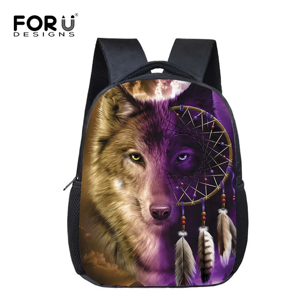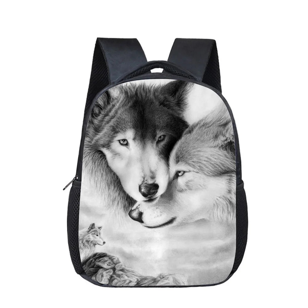This small preschool nursery backpack features a fun wolf print design, perfect for your little one's school essentials.