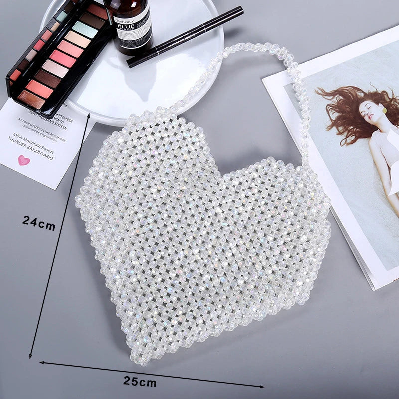 Woman Weave Heart-shaped Beading Crossbody Bag GF0620