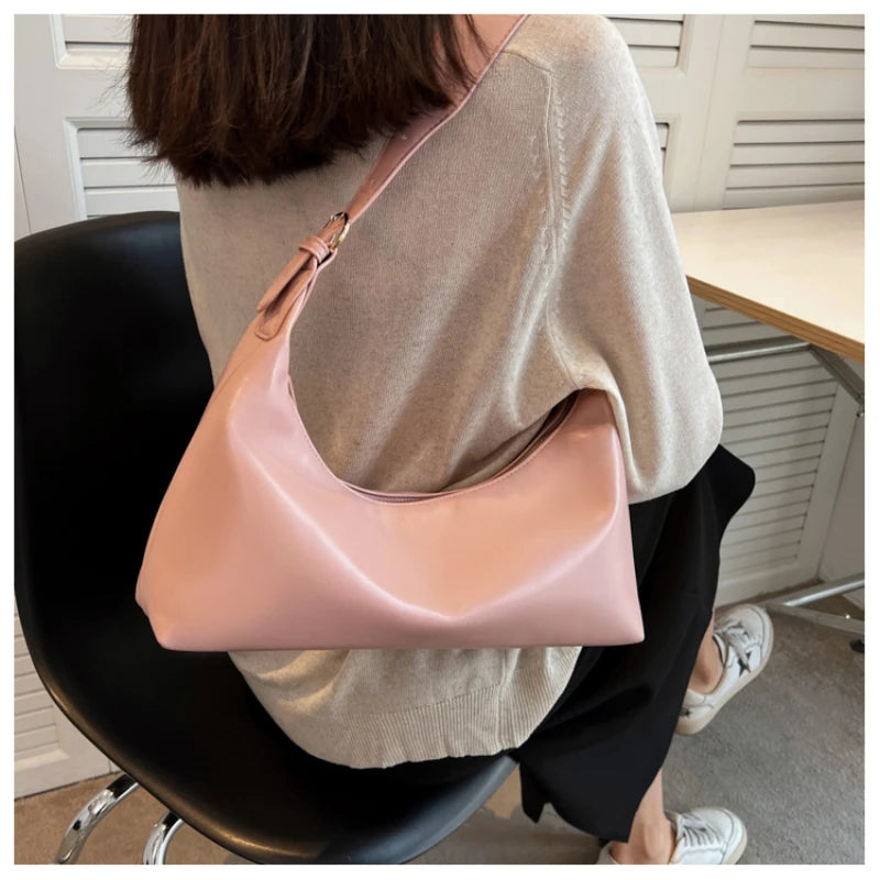 Women's Casual Shoulder Bag - High Net Red Versatile Crescent Bag