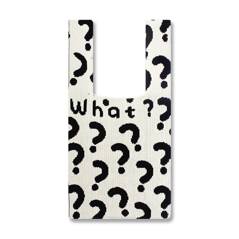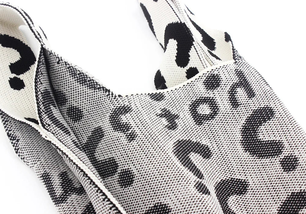 This trendy tote bag features a crochet vest design, perfect for a stylish and unique look. It has short handles for easy carrying and is medium-sized, ideal for shopping or everyday use.