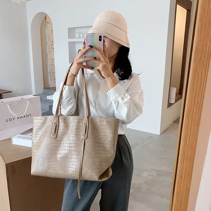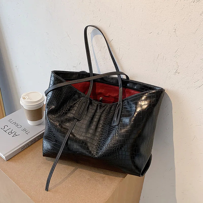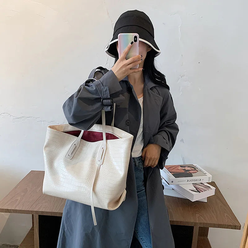 Women's Large Capacity Tote Bag Striped Shoulder Shopping Bag