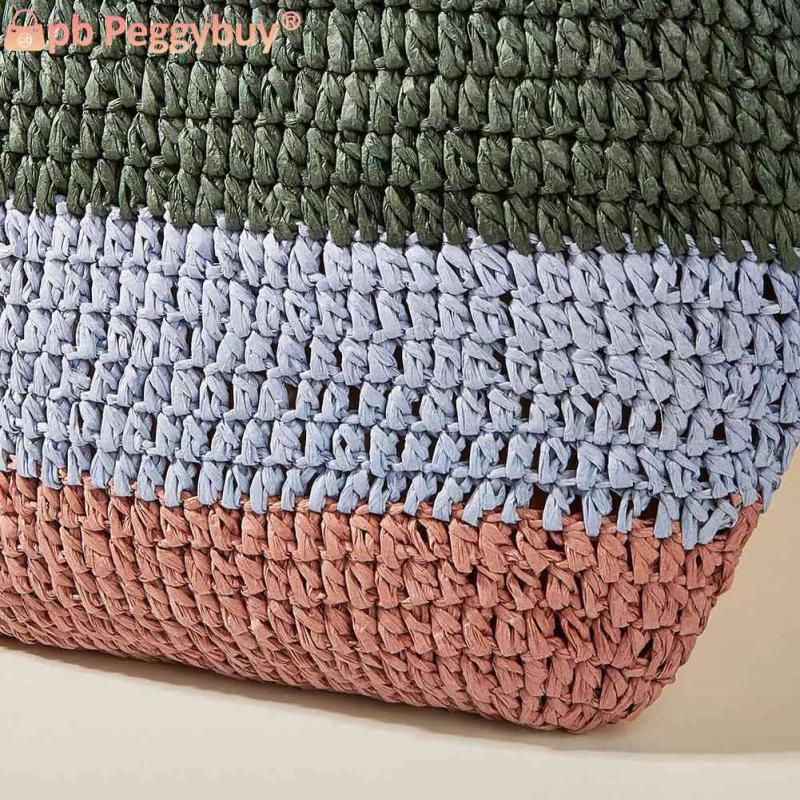 Stay stylish while shopping with this woven tote bag featuring a striped contrast design. Perfect for your seaside holiday or casual outings.