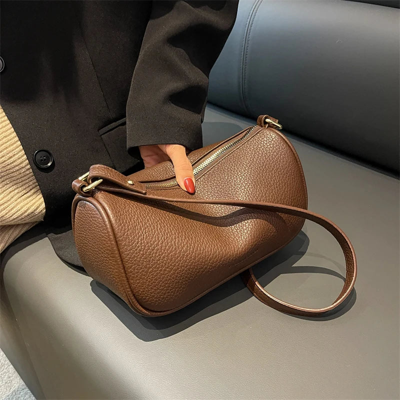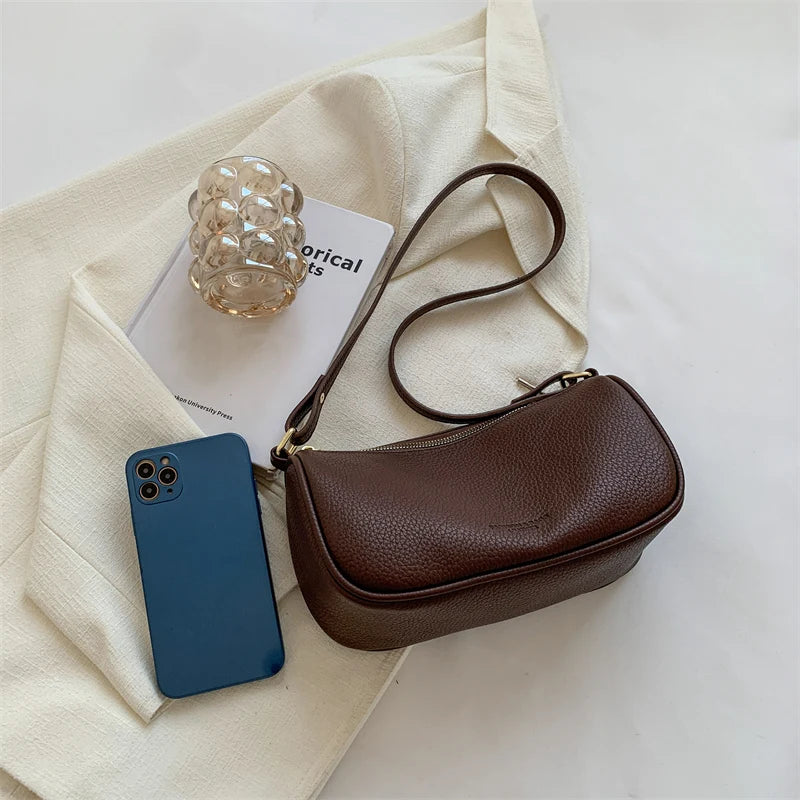Stay stylish with this women's leather shoulder bag, perfect for autumn and winter seasons. It's a solid color pillow bag that can hold your mobile phone and essentials.