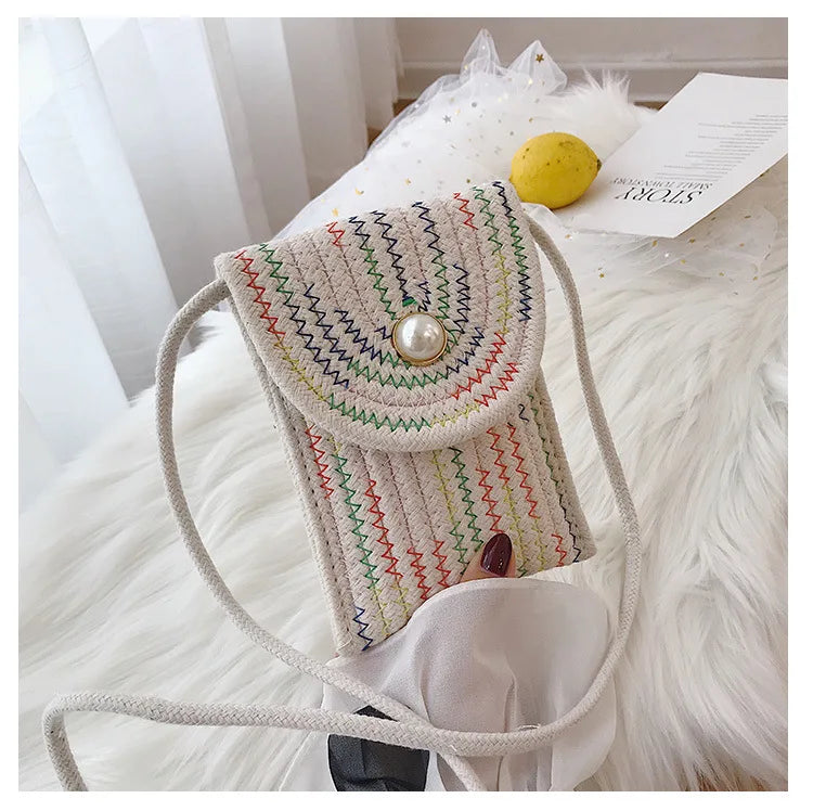 Women's Mini Cotton Linen One-Shoulder Messenger Phone Bag