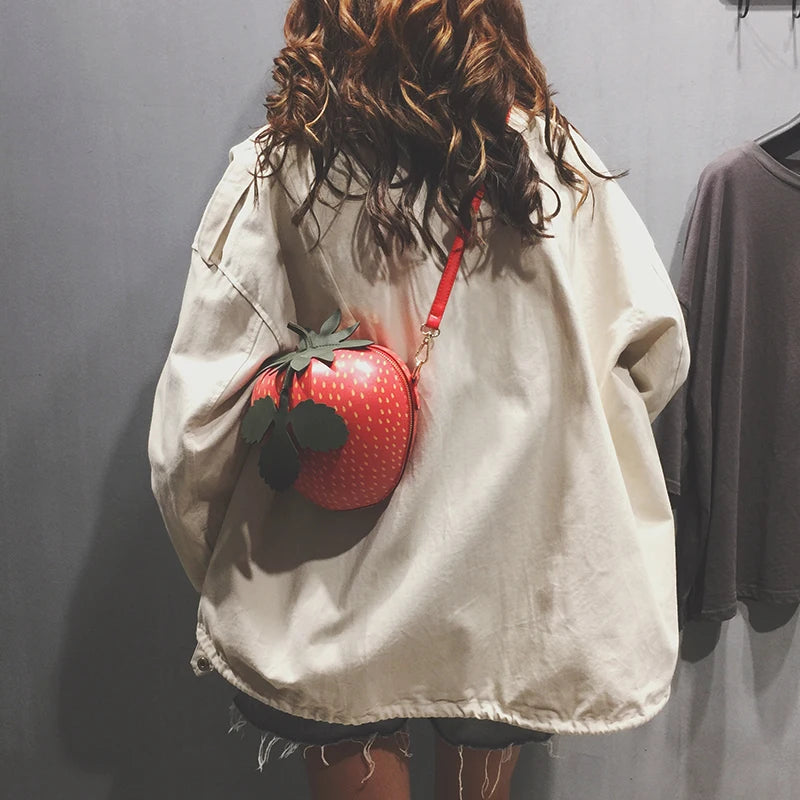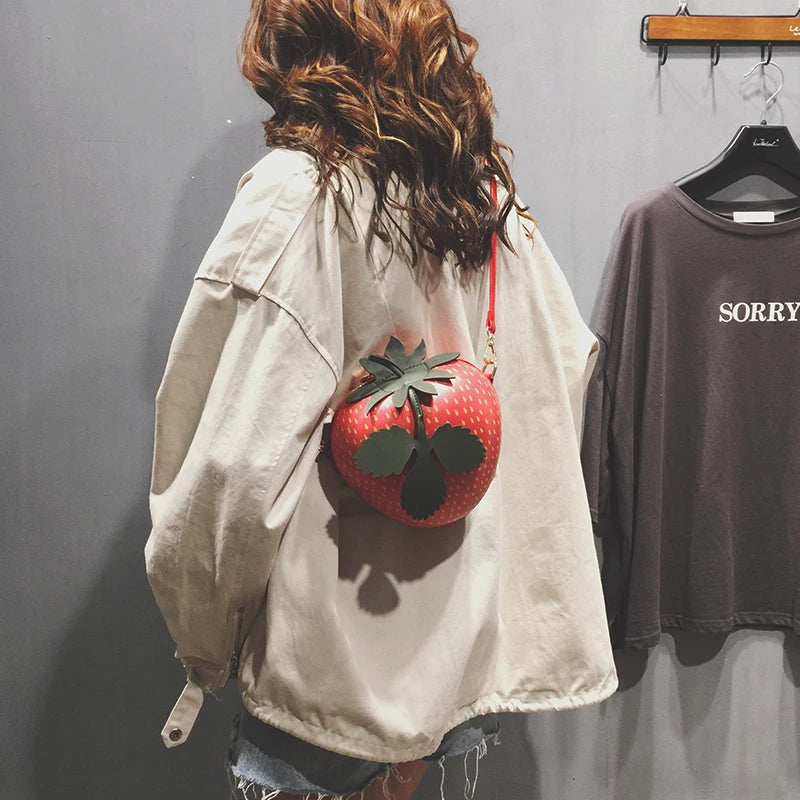 This fun and cute inclined single shoulder bag features a cartoon red strawberry design. It's perfect for carrying your coins and essentials in style.