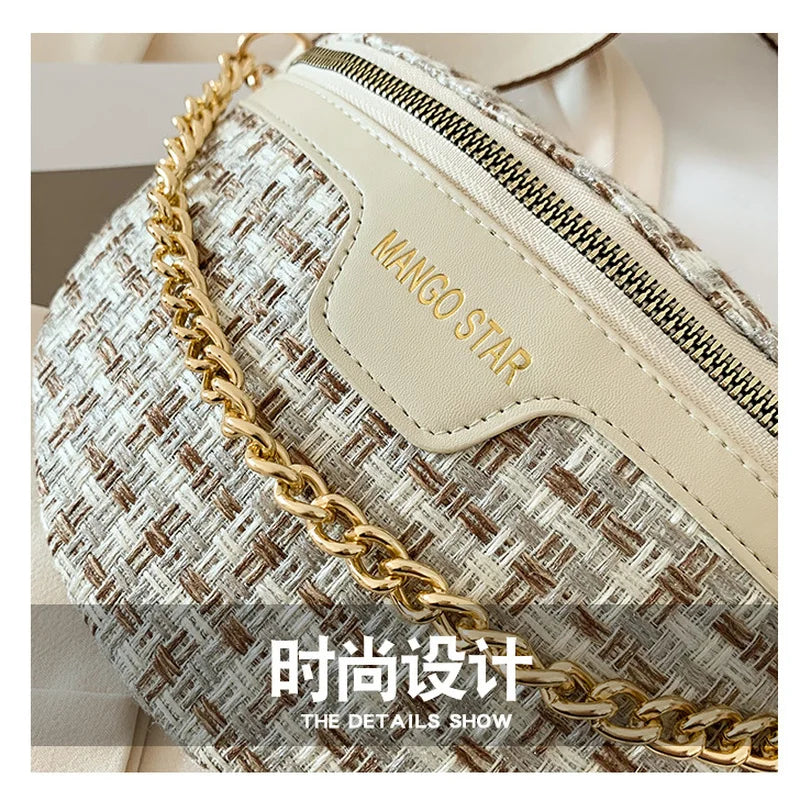 Woven Chest Bag Women Ins Chain Small Waist Messenger Bag