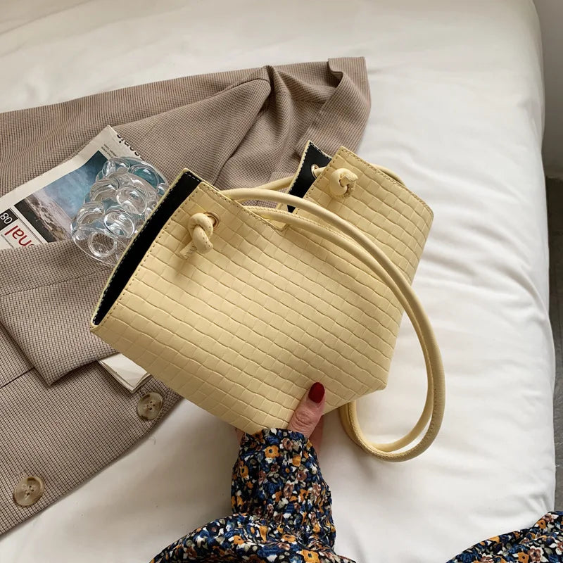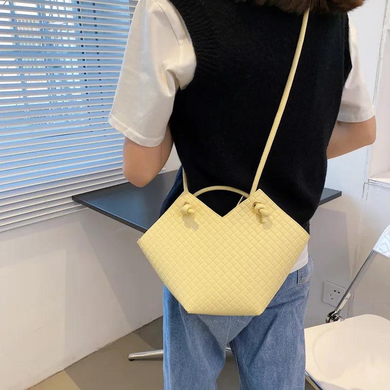 Woven Retro Shoulder Bucket Diagonal Tote Bag