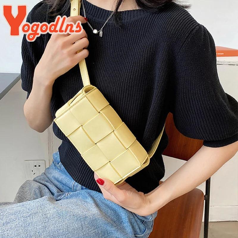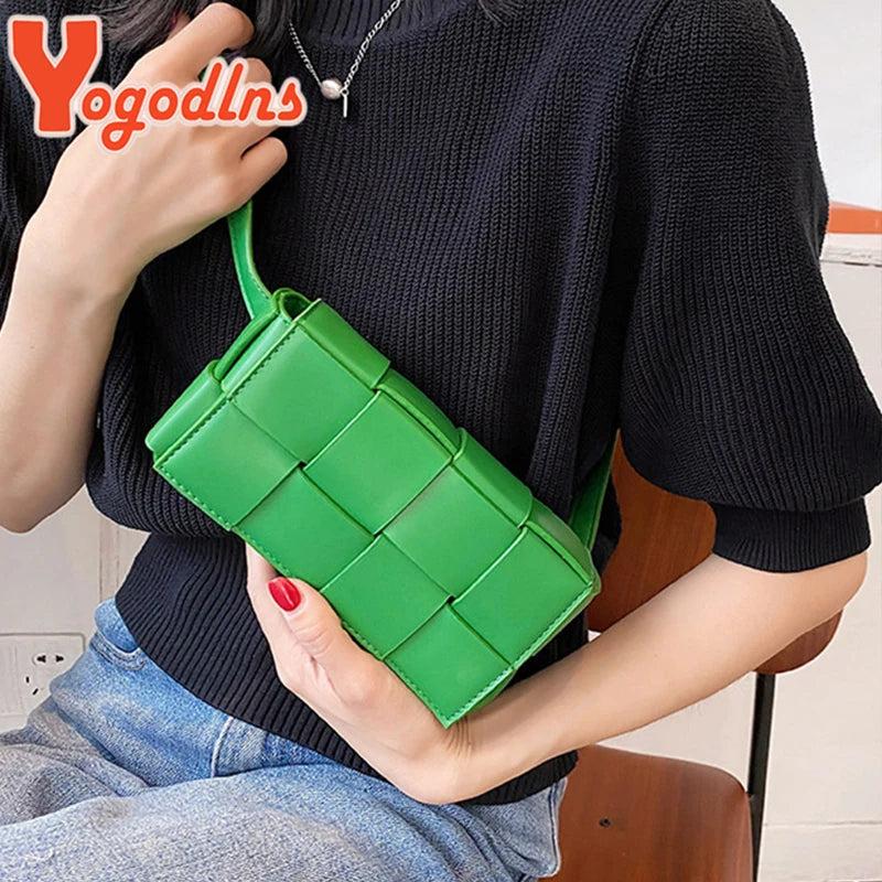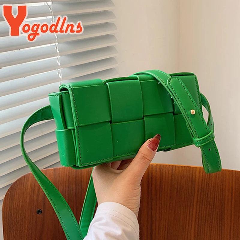 Woven Shoulder Bag Female PU Leather Flap Square Crossbody Bag