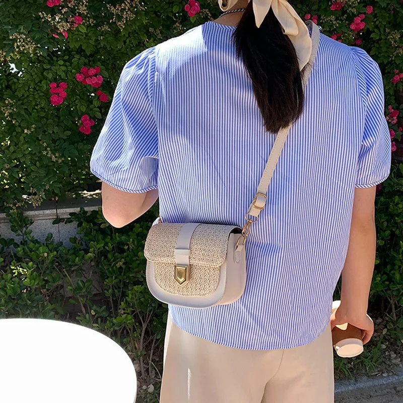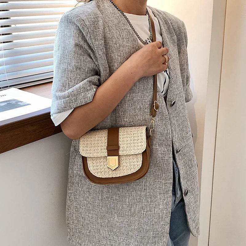 Woven Straw Bag Fresh One-Shoulder Saddle Bag