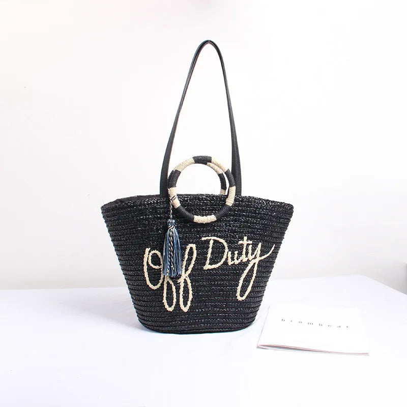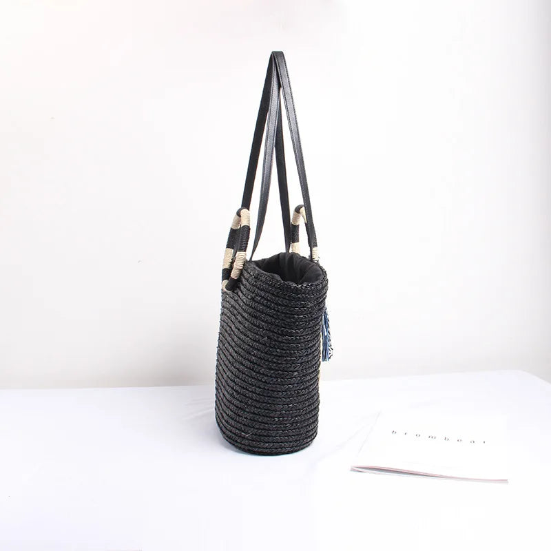 Woven Straw Shoulder Bag with Tassel, Ideal for Travel and Beach