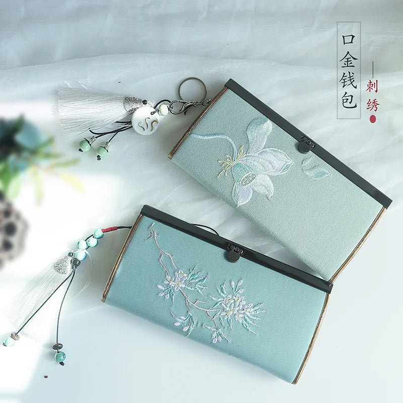 Description:Elegant long wallet featuring fabric embroidery in a Mori literary retro style, perfect as a gift for women.Features: Fabric embroidery in an ancient Chinese style Mori literary retro design Ideal as a gift for ladies Spacious clutch wallet for essentials Elegantly crafted with attention to detail This product may be...