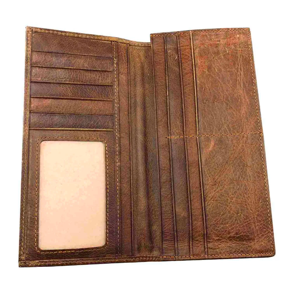 A stylish and durable billfold wallet made from vintage cow leather. It can hold cards, money, and other essentials.