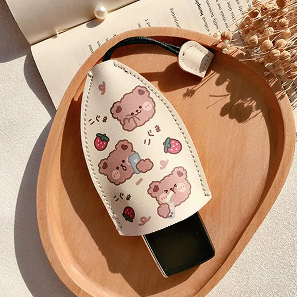 Adorable cartoon animals printed leather pouch with chain for car organization and storage.