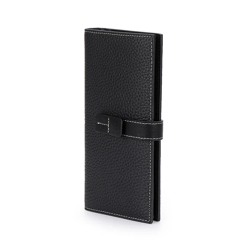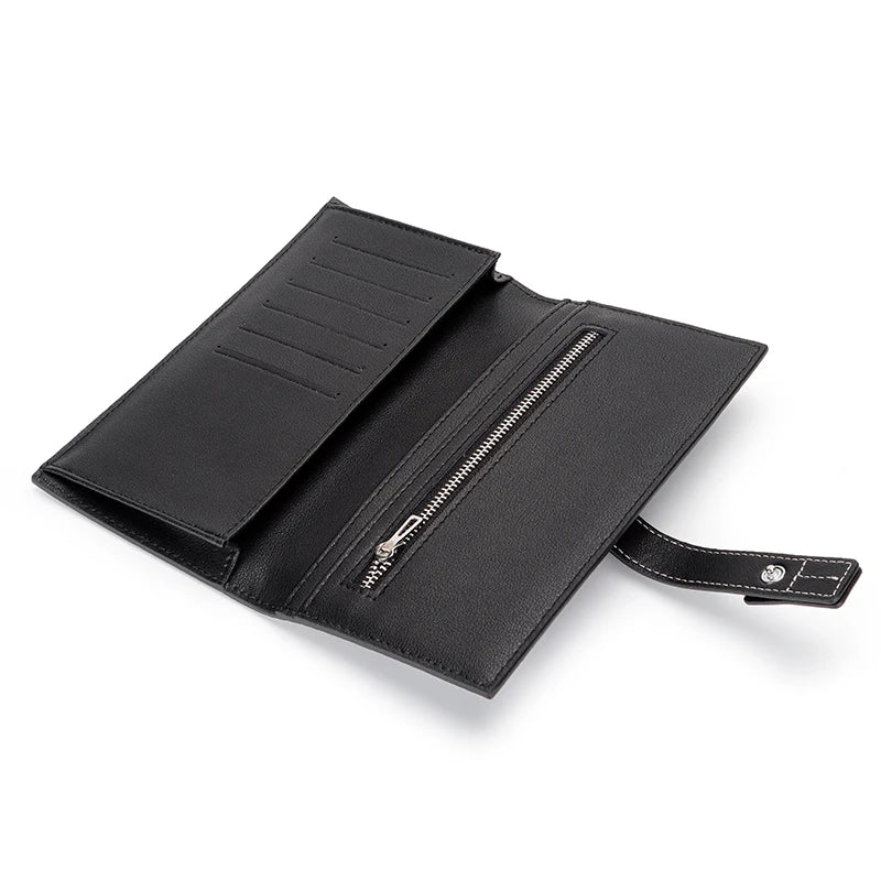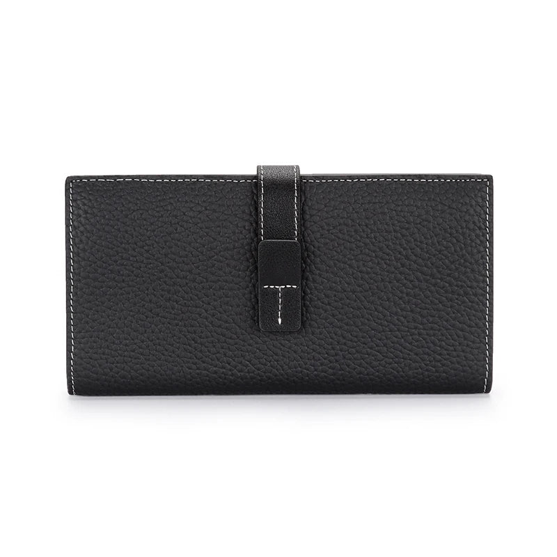 Cowhide Leather Zipper Purse Drawstring Long Wallet for Women