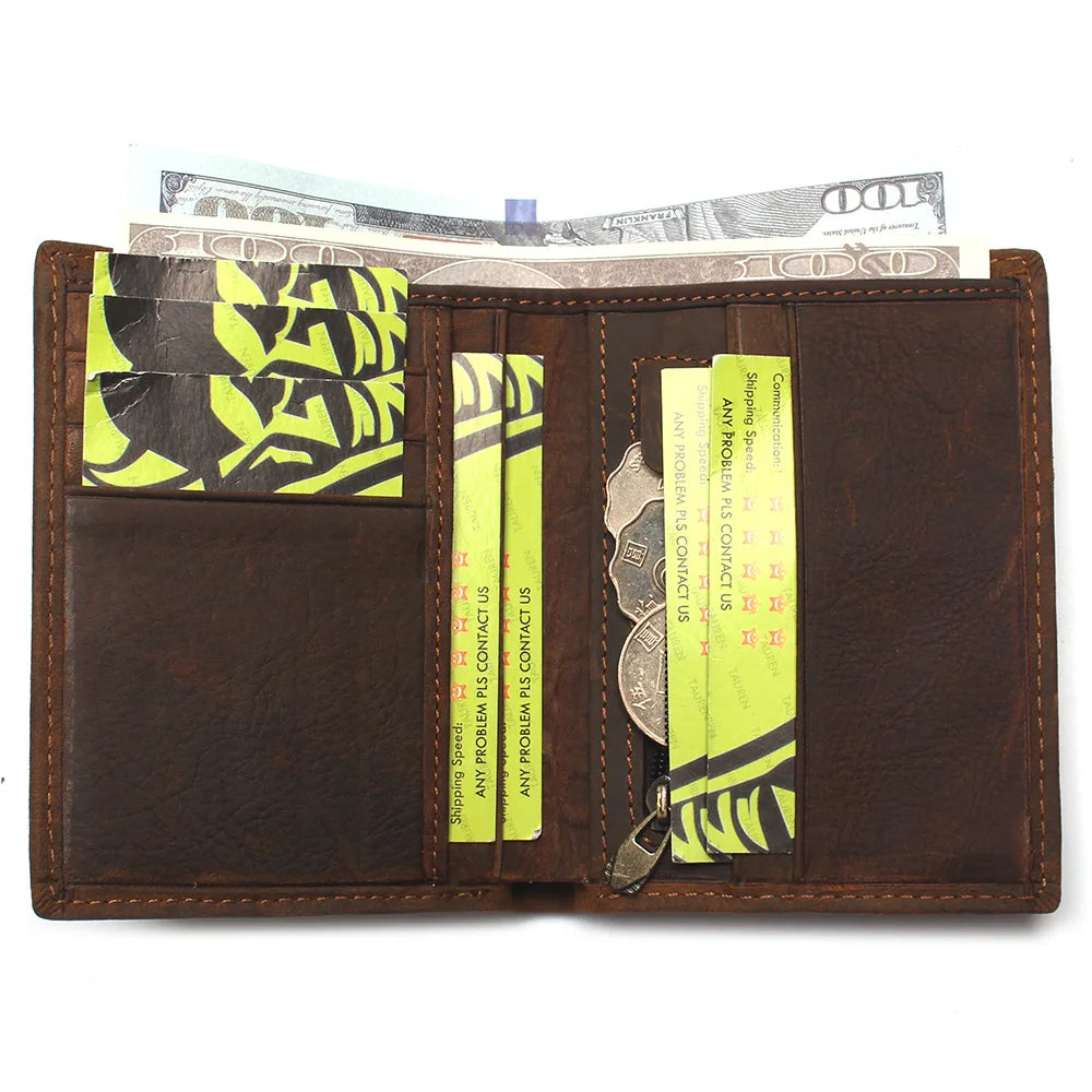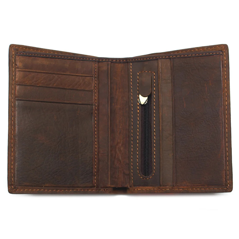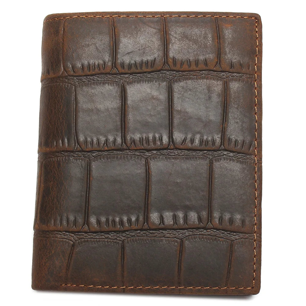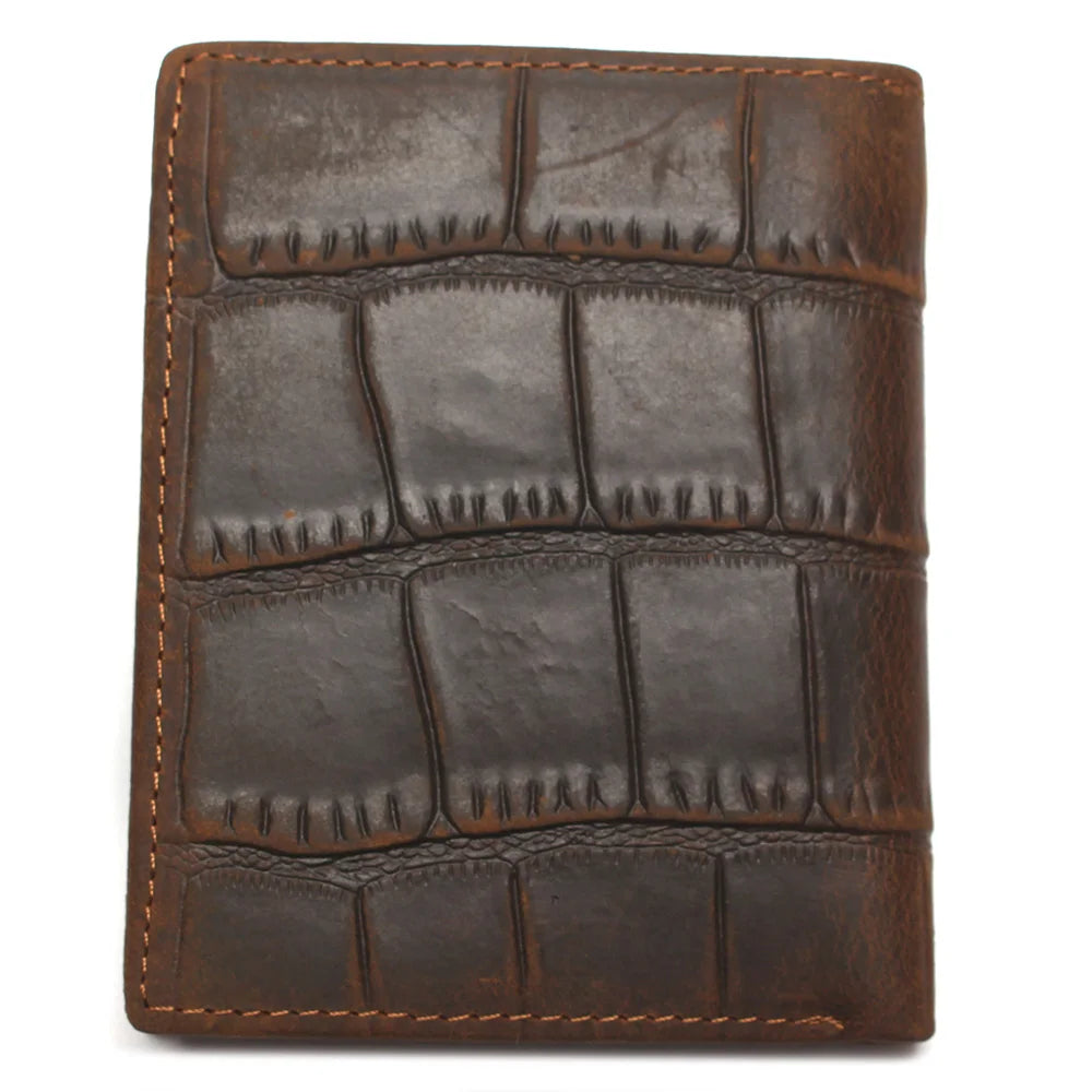 Experience luxurious style with this high-quality 100% leather wallet featuring a crocodile pattern and crazy horse finish.