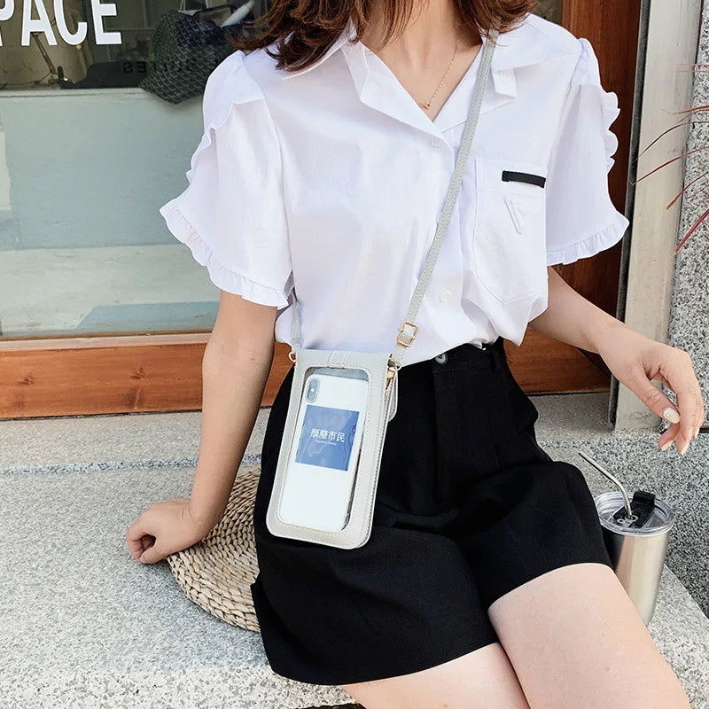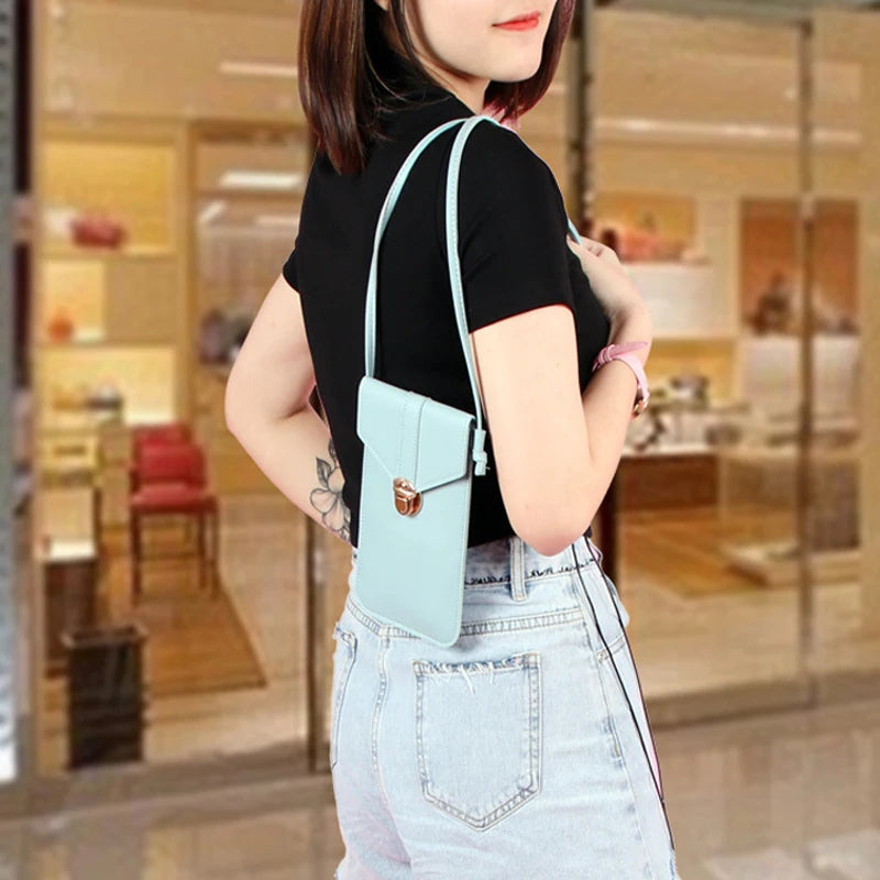 This crossbody cell phone bag is perfect for carrying your essentials while on the go. With a touch screen design, it allows you to use your phone without taking it out of the bag.