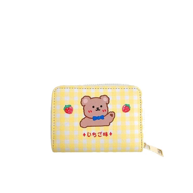 This adorable small wallet features a cartoon bear design and is perfect for holding coins, keys, and other small items. It has a secure zipper closure and is compact for easy carrying.