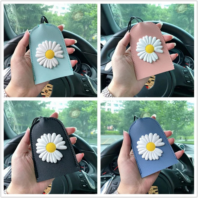 This cute cartoon daisy flowers key bag is made of high-quality PU leather and is perfect for holding your keys. It features a pull-type design for easy access and comes with a keychain pouch for added convenience.
