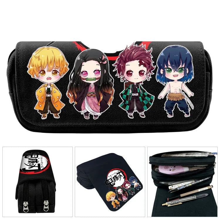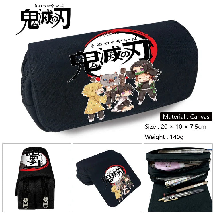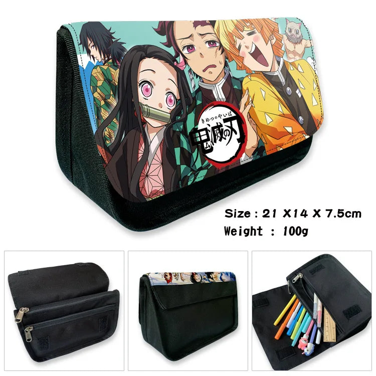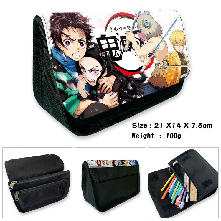 This pencil case features a design inspired by the popular anime series Demon Slayer. It is perfect for storing pens, pencils, and other stationery items.