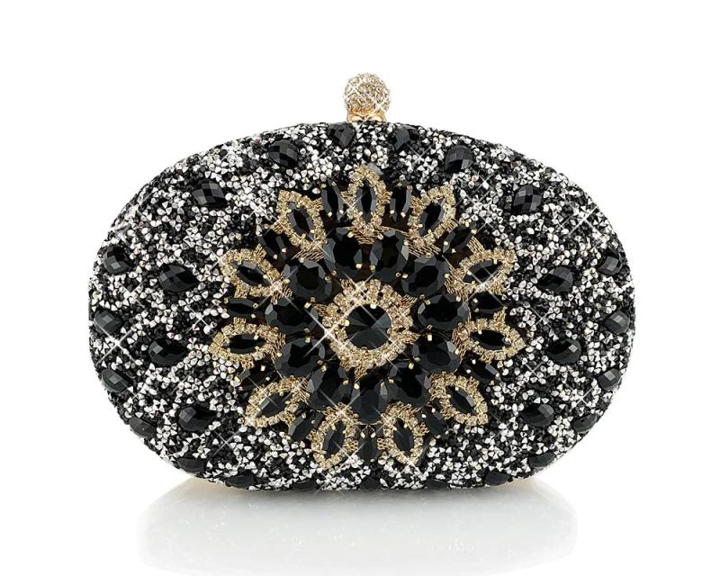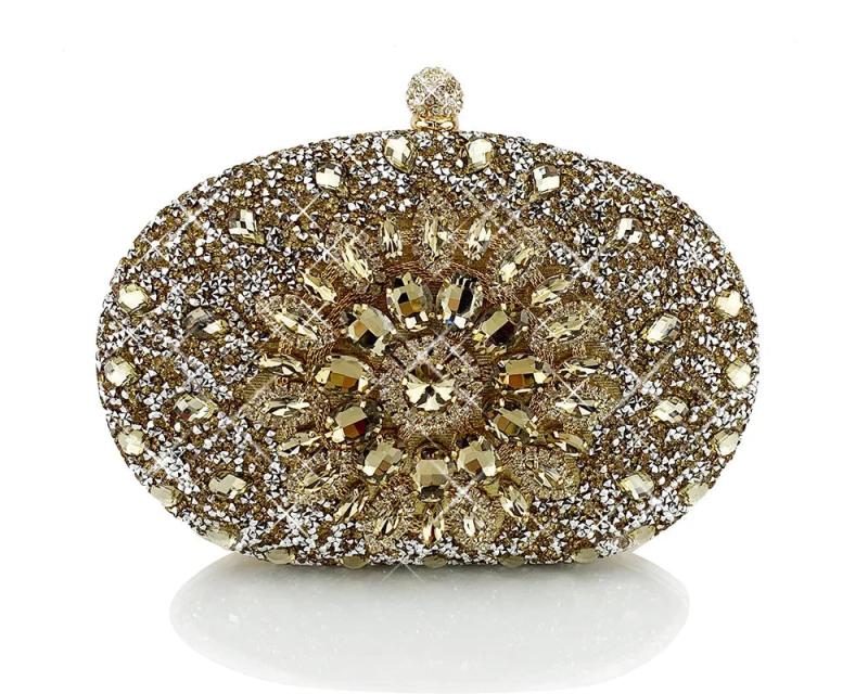 • Sequined egg-shaped clutch bags with diamond sunflowers