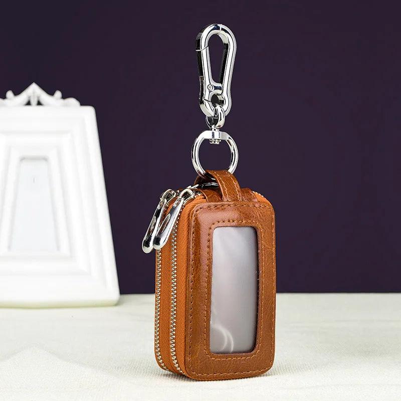 Keep your keys organized and secure with this double-layer leather key holder wallet. Ideal for car and home keys.
