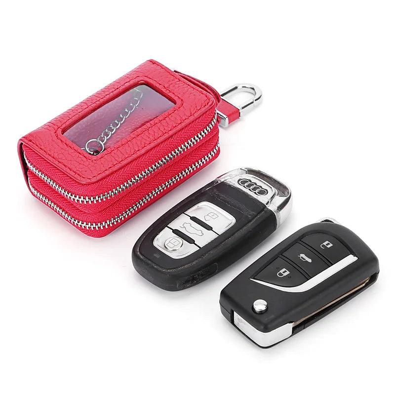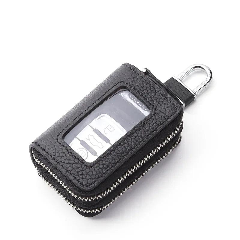 This cowhide leather key case is designed with a double layer zipper for secure storage of your car key. It is a multifunctional key bag suitable for both men and women. The solid pillow design adds a touch of style to the keychain wallet pouch.