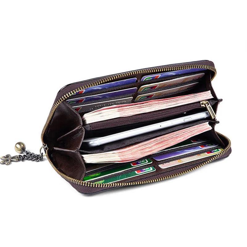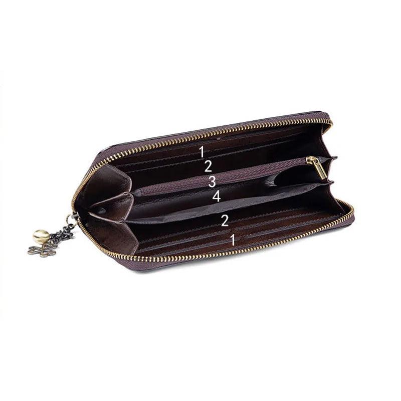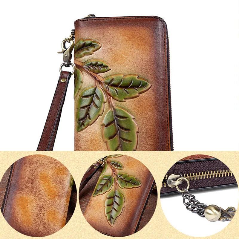 Embossed Vintage Leather Wallet Ladies Clutch Bag Zipper Bag