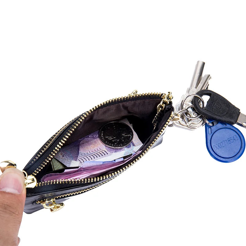 This multi-function coin purse and key wallet embraces European and American style with its oil wax leather design.