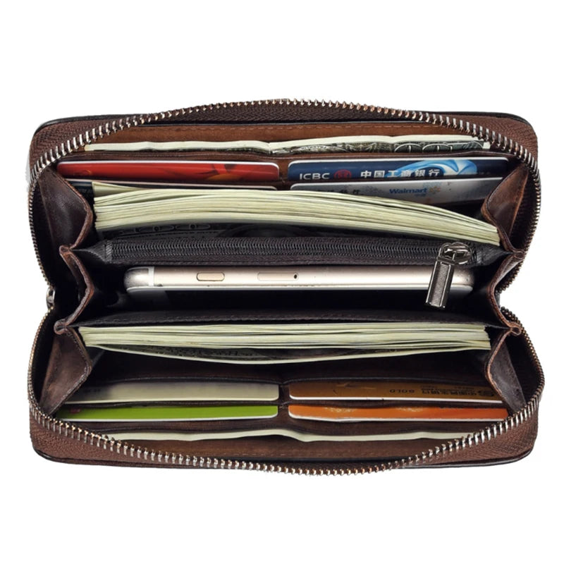 This high-quality leather long wallet is designed for girls with a stylish engraving and embossing. It features a red brown color and offers ample space for your essentials.